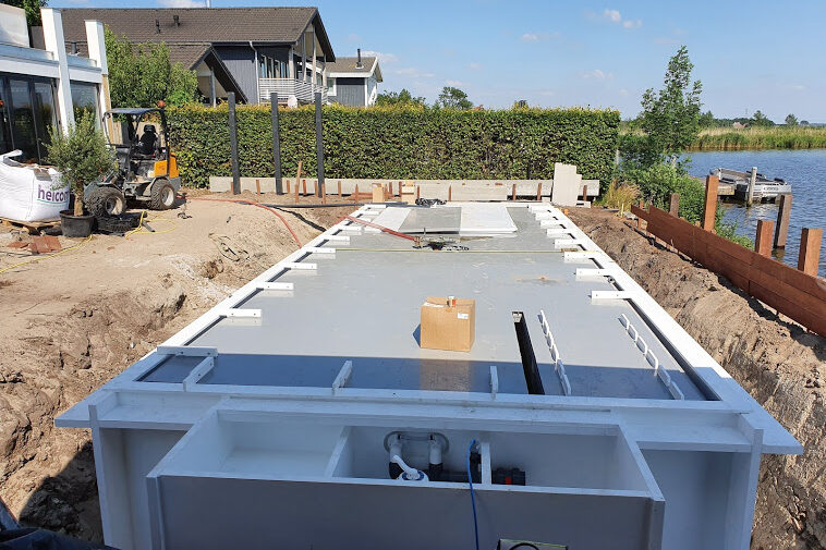 Wanneer u een keuze heeft gemaakt met betrekking tot de vorm en maat van het zwembad, zal de productie daadwerkelijk beginnen. Indien de afmeting van het zwembad binnen de breedte van 390 cm blijft, zal het zwembad in zijn geheel vervaardigd worden en naar de plaats van bestemming worden getransporteerd. Wanneer het zwembad echter een breedte heeft groter dan 390 cm zal het zwembad in delen worden geproduceerd en worden vervoerd. Op locatie zal het zwembad aan elkaar gemonteerd worden.